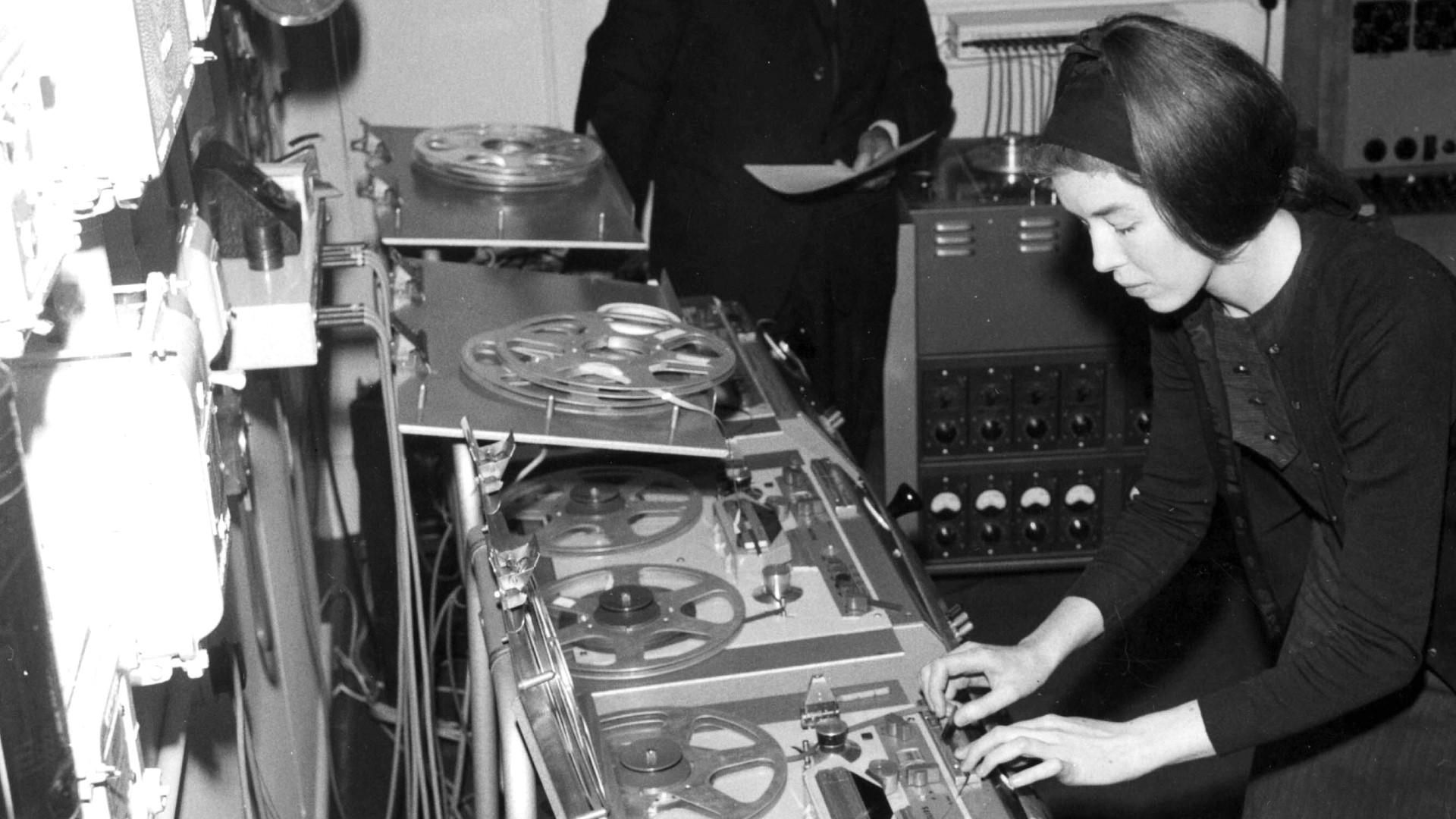 Dave continues, "Victor was particularly fond of our song Henry & James, loved Barbara's voice and appreciated my sense of harmony. Having got to know him and longstanding co-writer Paul Sparks via meetings in Soho drinking establishments, he invited me to compose a theme tune for his 1993 TV series Inside Victor Lewis-Smith. This led to a fruitful and hugely enjoyable collaboration stretching over 15 years. Victor always involved his entire production team in the creative process, to the point where I was sometimes able to attend filming and, with the help of technical wizard and editor John Warburton, design visual sequences to accompany my music. I consider the featured 'Alchemists of Sound' title music (composed for a documentary on the BBC Radiophonic Workshop) to be some of our best work for Victor: filmed at BBC Maida Vale Studios, it features Barbara enacting the hands of legendary Workshop composer Delia Derbyshire, intercut with brief archive clips of Delia herself, Radiophonic Workshop co-founder Desmond Briscoe and composer John Baker."